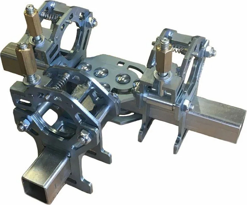 - Центрирование происходит непосредственным прижимом редукционных вкладышей к центрируемым трубам, что обеспечивает наилучшую соосность и одновременную фиксацию зажимов от продольного перемещения