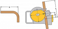- Если дуга должна располагаться на определенном месте трубы, следует соответственно размеру трубы произвести корректировку длины. Для изгиба колен 90° или 45° необходимо произвести корректировку согласно размеру X. Для этого сократить желаемую длину L на показатель X. Если при размере трубы 22 величина L = составляет 400 мм, и необходимо создать дугу с радиусом изгиба 77 мм, то размерную риску на трубе необходимо нанести на 319 мм. Эта разметка, как и показано, должна быть зафиксирована на маркировке 0 сегмента гибки.