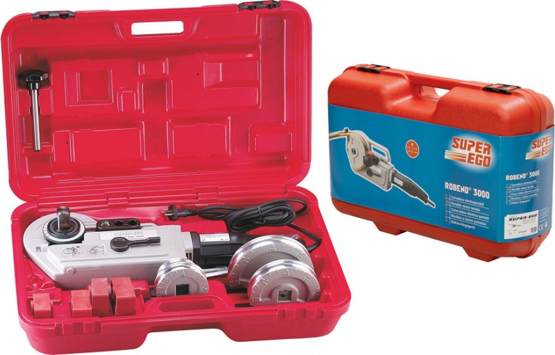 Модель снята с производства! Трубогиб электромеханический Super-Ego Robend 3000 Set 18-22-28 мм (Супер-Эго Робенд 3000 Сет 18-22-28 мм) предназначен для гибки медных, алюминиевых, тонкостенных стальных, нержавеющих стальных и металлопластиковых труб Ø 18, 22, 28 мм на угол до 180°. Используется при монтаже систем водоснабжения, отопления и кондиционирования, холодильной техники, а также в производстве.