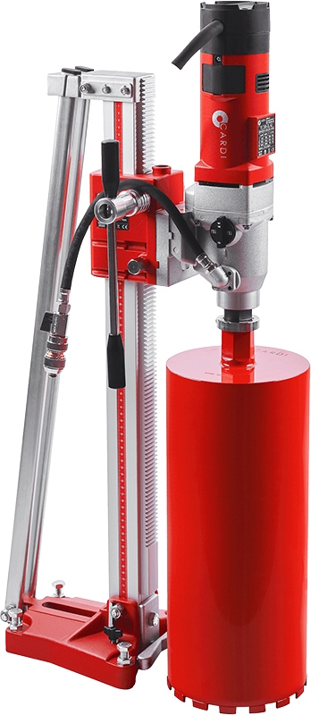 Установка алмазного бурения Cardi 200 (Карди 200) предназначена для алмазного сверления отверстий Ø 30 – 200 мм (1 1/8" – 8") алмазными сверлильными коронками в бетоне, слабо и среднеармированном бетоне, а также Ø 30 – 250 мм (1 1/8" – 10") в асфальте, кирпичной и каменной кладке и т.д. с подачей воды.